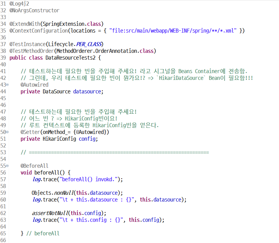 // 그런데, 우리 테스트에 필요한 빈이 뭔가요!? => `HikariDataSource` Bean이 필요함!!!