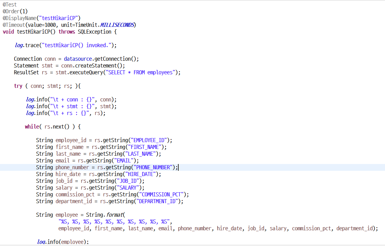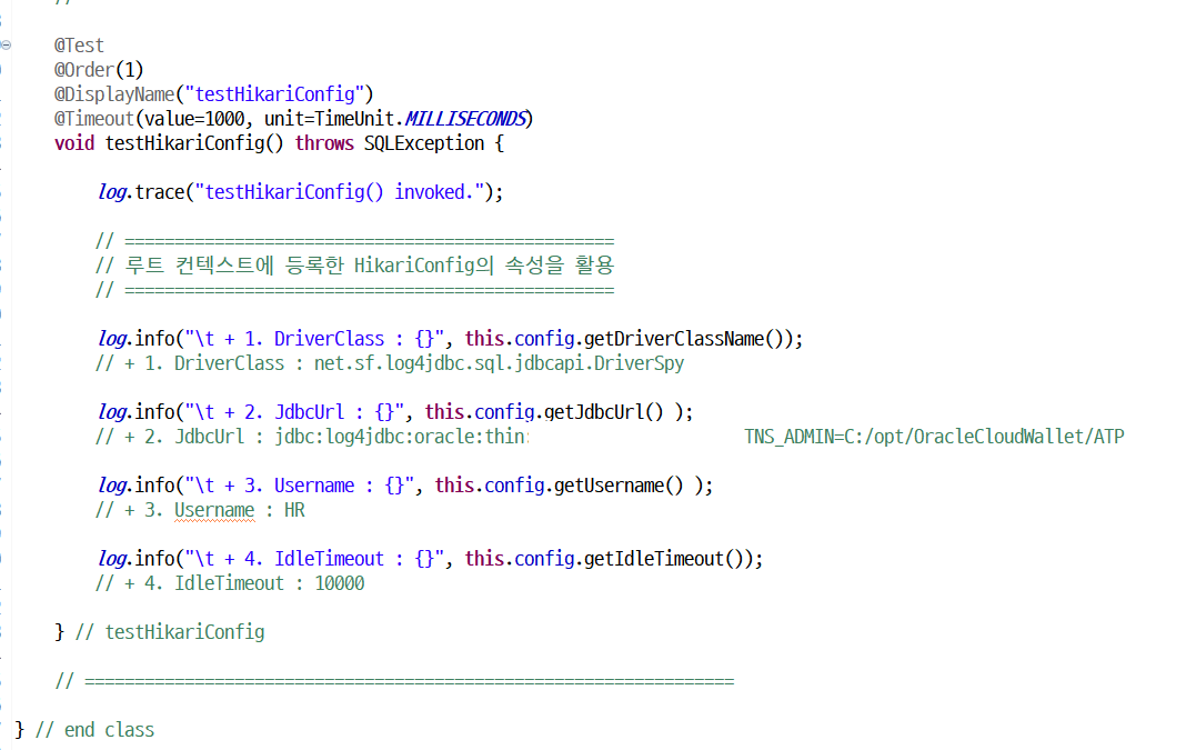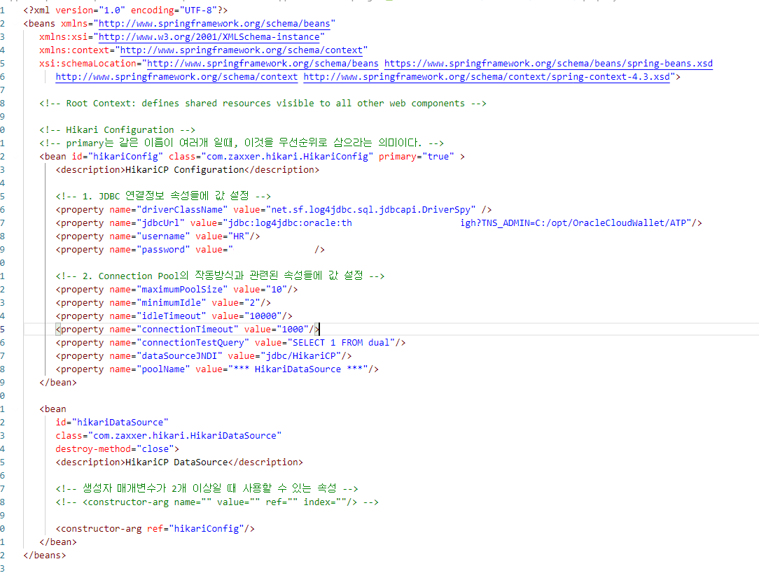 // 루트 컨텍스트에 등록한 HikariConfig의 속성을 활용