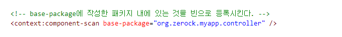 <!-- base-package에 작성한 패키지 내에 있는 것을 빈으로 등록시킨다. -->