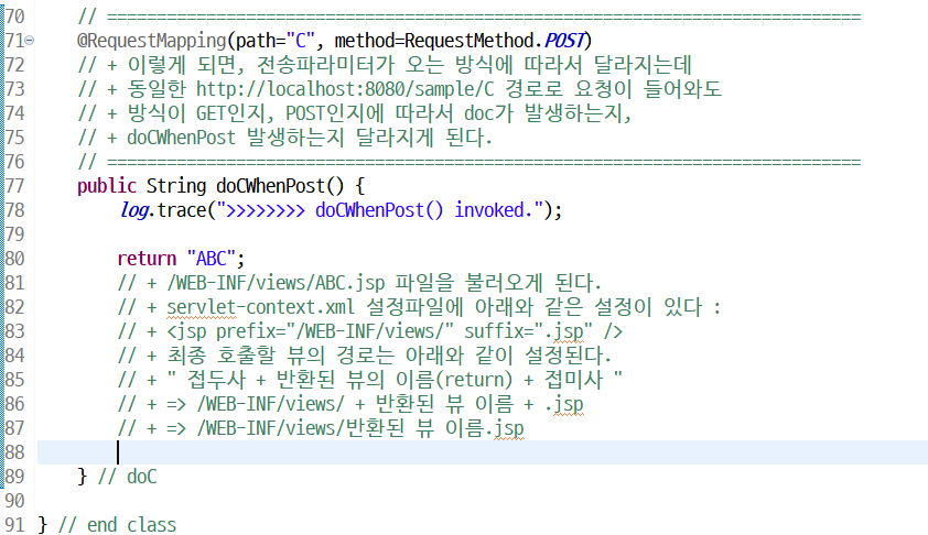 // + method를 생략하여, @RequestMapping(value="A")로만 작성해도 된다.