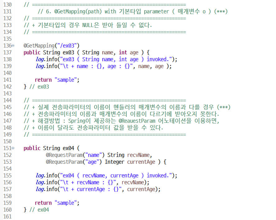 // 6. @GetMapping(path) with 기본타입 parameter ( 매개변수 o ) (***)