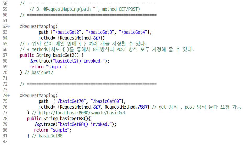 method= {RequestMethod.GET, RequestMethod.POST} // get 방식 , post 방식 둘다 요청 가능