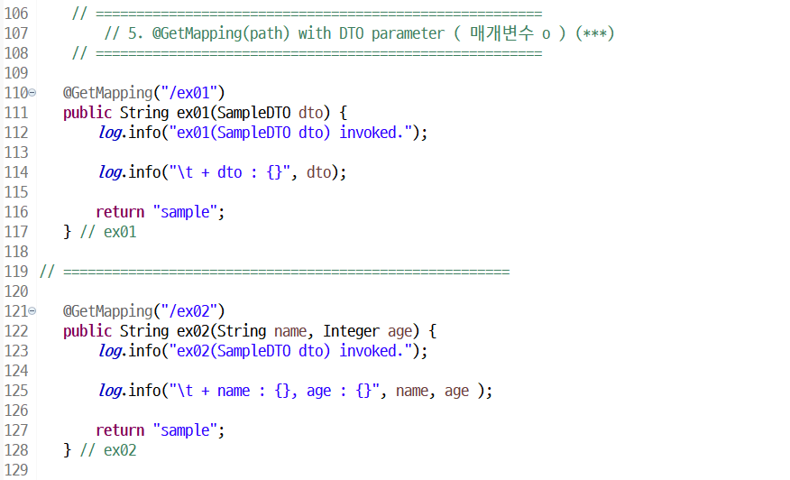 // 5. @GetMapping(path) with DTO parameter ( 매개변수 o ) (***)