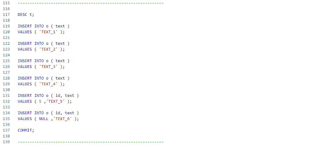 VALUES ( 5 ,'TEXT_5' );