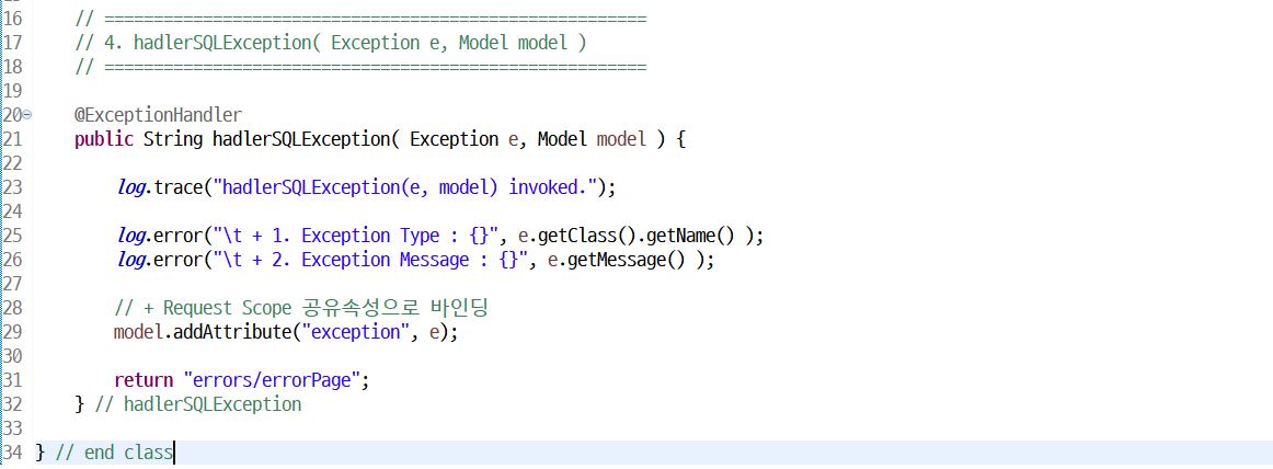 // 3. Exception( Exception e, Model model )