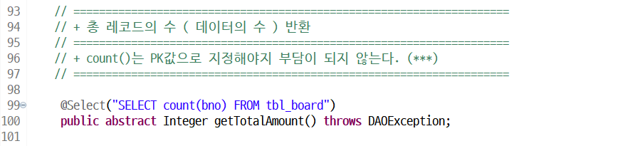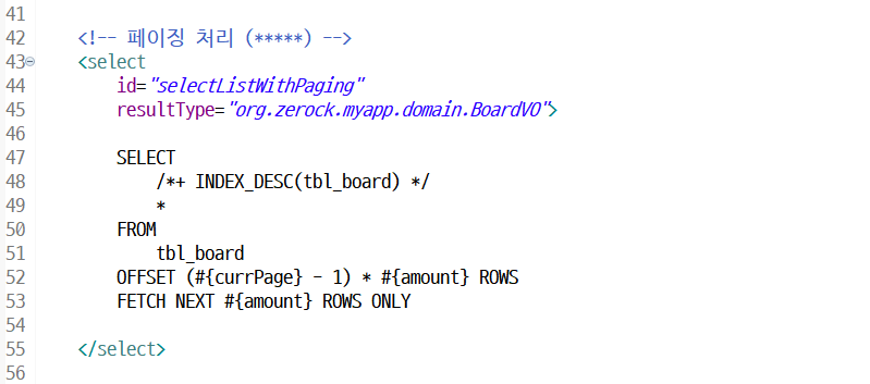 @Select("SELECT /*+ index_desc(tbl_board) */ * FROM tbl_board WHERE bno > 0")