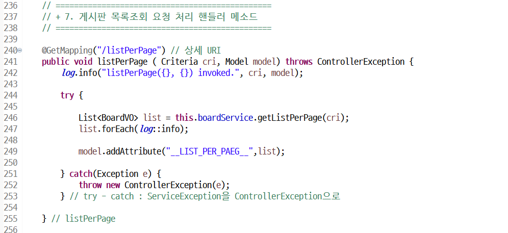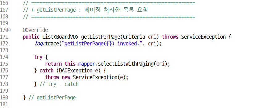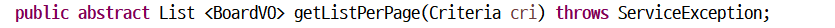 public abstract List<BoardVO> selectListWithPaging(Criteria cri) throws DAOException;