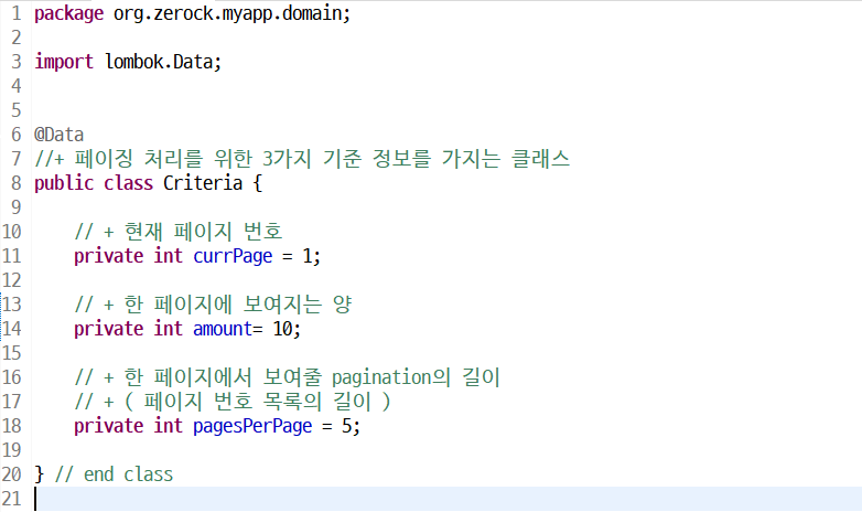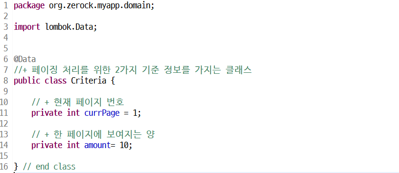 [ 1 - 1. 페이징 처리에 필요한 기준 정보를 지닌 클래스 생성 - domain ]