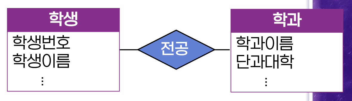 - 개체 집합 간의 연결 관계