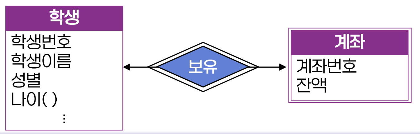 - 약한 개체 집합과 연결되는 개체 집합