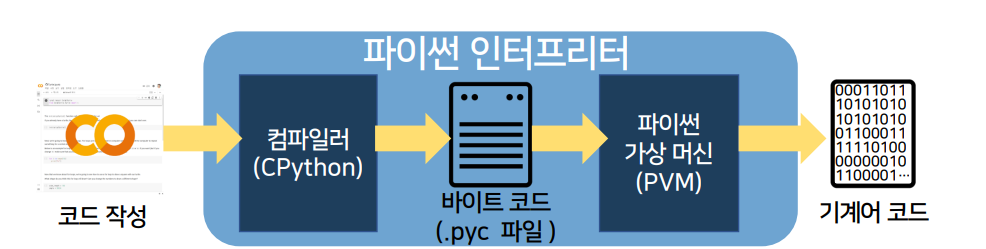 - CPython이 컴파일 후 바이트 코드 .pyc 파일 생성