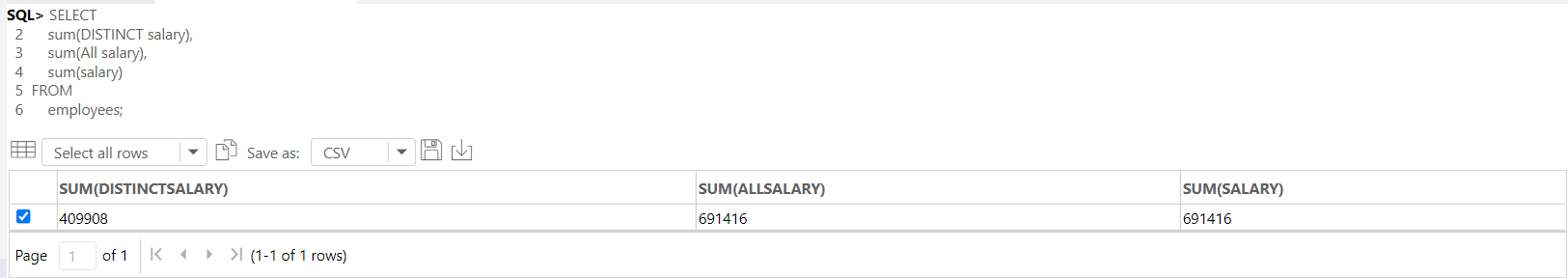 -- DISTINCT나 ALL 중 선택하여 작성하지 않으면, 자동으로 ALL로 선택되어 적용된다.