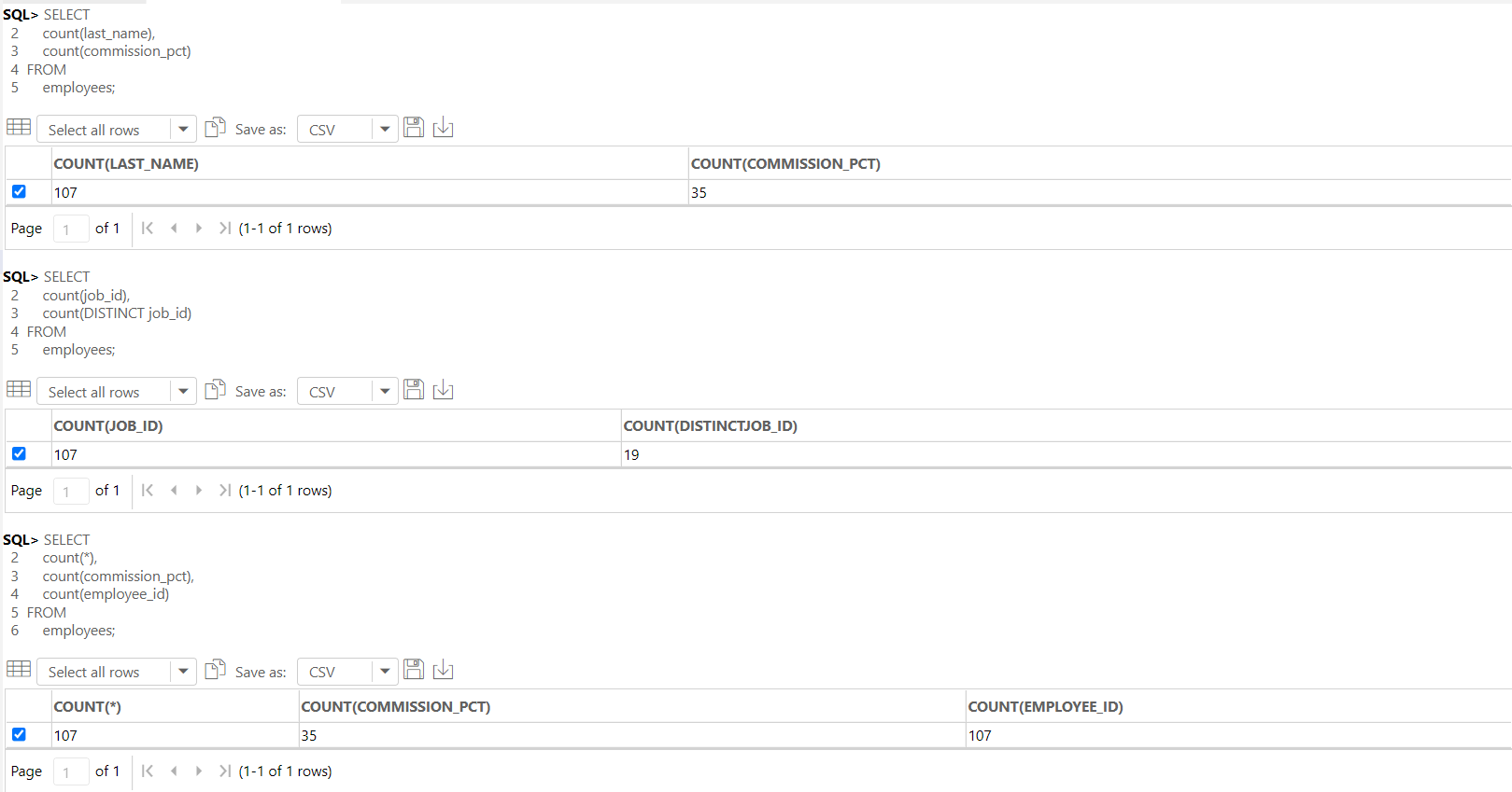 -- count를 사용할 때에는 NULL이 없는 컬럼을 사용하는 것이 좋다. ( 기본key 속성의 컬럼을 사용하는 것이 좋다. (***) )