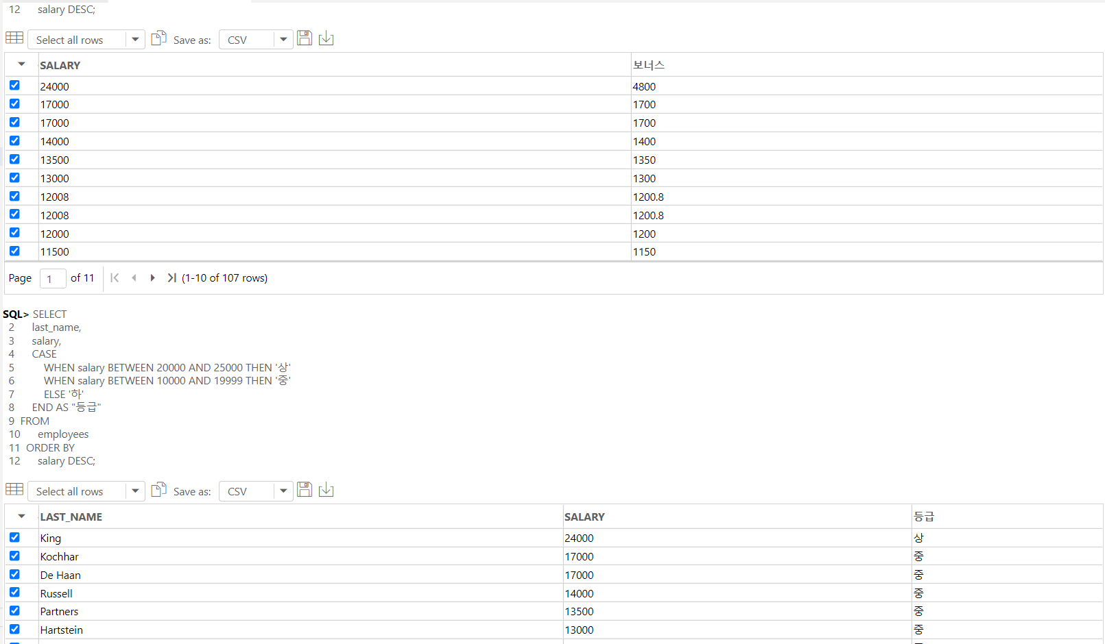 WHEN salary BETWEEN 10000 AND 19999 THEN '중'
