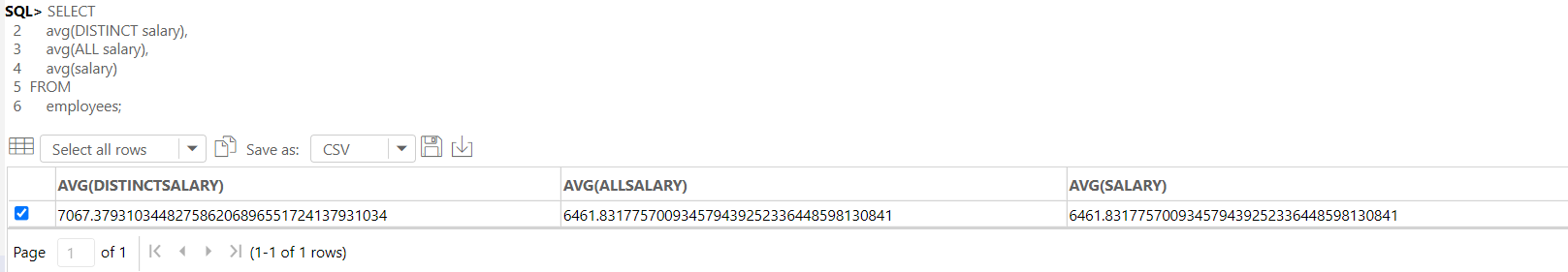 avg(DISTINCT salary),