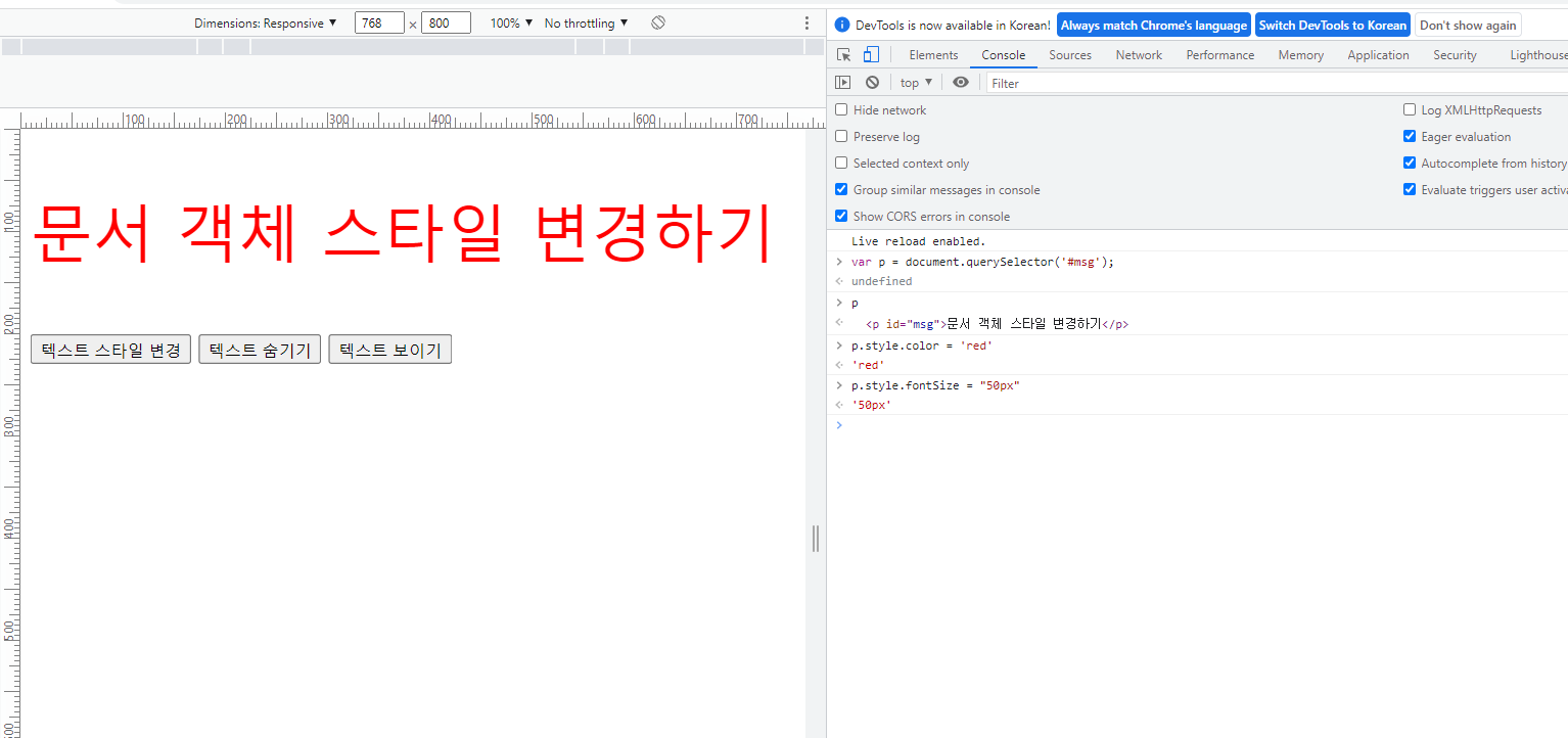 <p id="msg">문서 객체 스타일 변경하기</p>